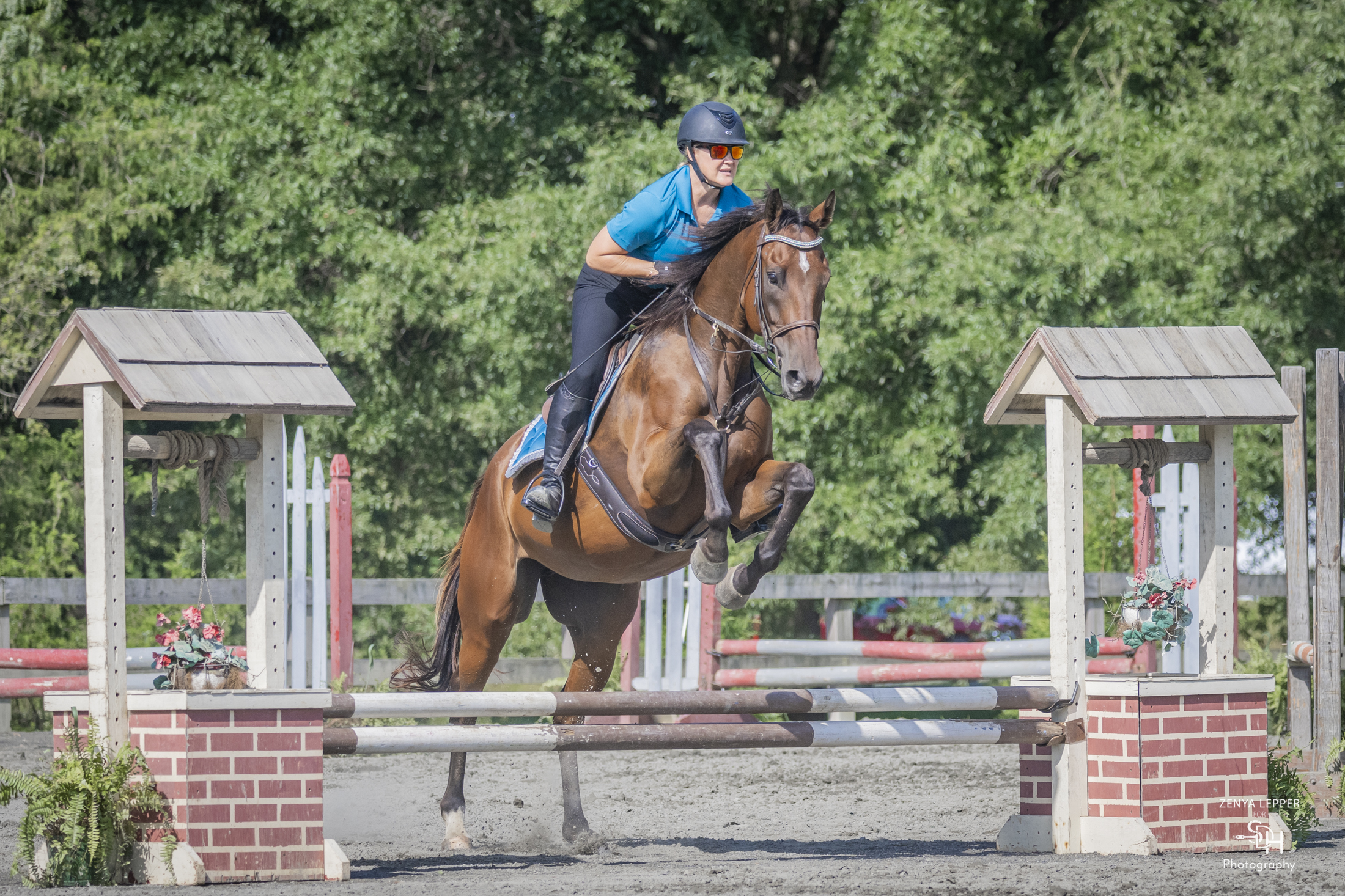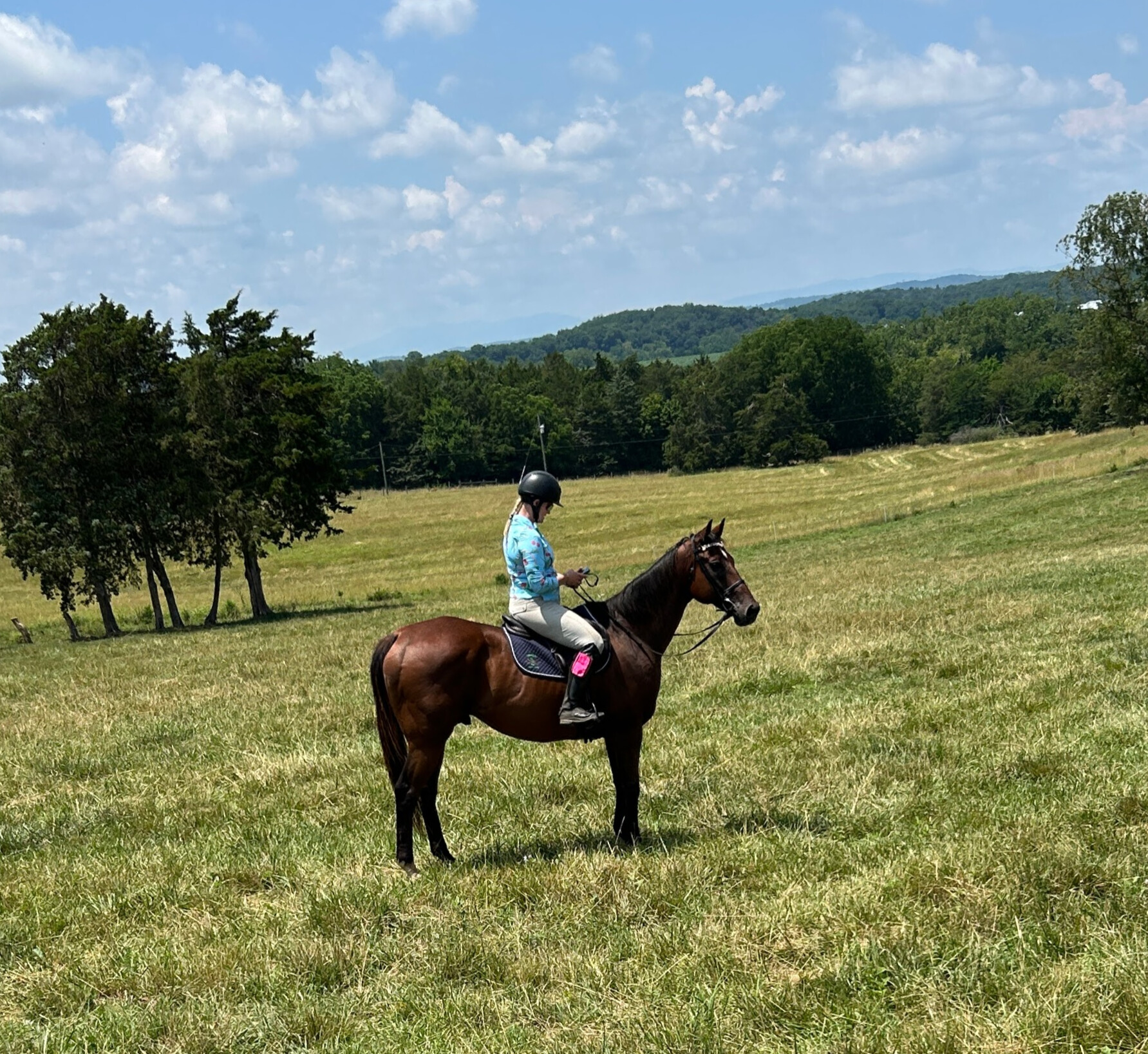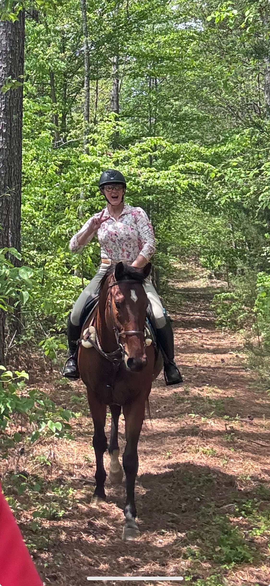 Magic is a great lesson horse and we are in the process of getting videos of him with young and beginner students on him. He is a great find. He belongs to my oldest daughter who wanted to bring up a project horse. She has now moved on to a more talented jumper mare who can show at 3+ feet. Magic is just not interested in going that high! He's more of a "let's just go on with life" style than an "Let's attack these fences. Let's run fast, turn sharp and jump high" kind of guy. He would make a great guest horse, a husband horse, or any other lifestyle that allows him to enjoy life at his own pace. On the trails he rides in front, back or any place you put him.